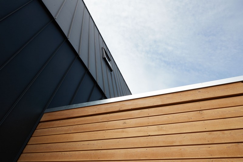 Houtskeletbouw-stalen dak