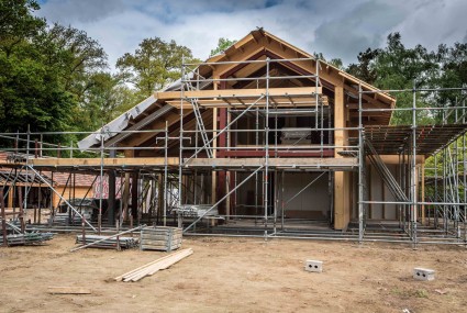 Dan is het zover! De bouw van uw houtskeletbouwwoning gaat beginnen. Op maat zonder enige beperking met een open bouwproces, zo bouwen wij. Houtskeletbouw is niet alleen flexibel als het gaat om ontwerp, ook het bouwproces is met houtskeletbouw erg flexibel. Een echt kenmerk van houtskeletbouw is de snelle bouwtijd. Alle onderdelen van het casco van de woning worden al gefabriceerd in de fabriek. Op de bouwplaats hoeven de onderdelen dan alleen nog in elkaar gezet te worden. Binnen zeer korte tijd is uw woning dus wind- en waterdicht. Dit is ook een groot voordeel als u zelf u woning wilt afbouwen. U kunt dan altijd droog werken.
