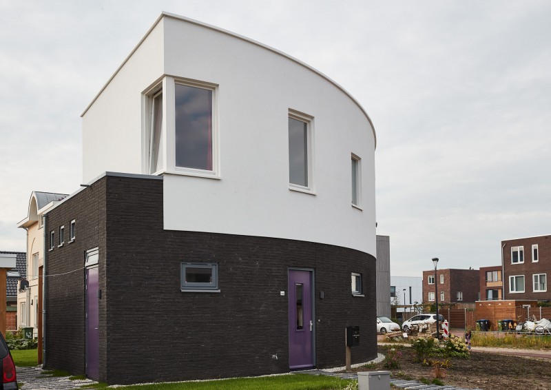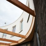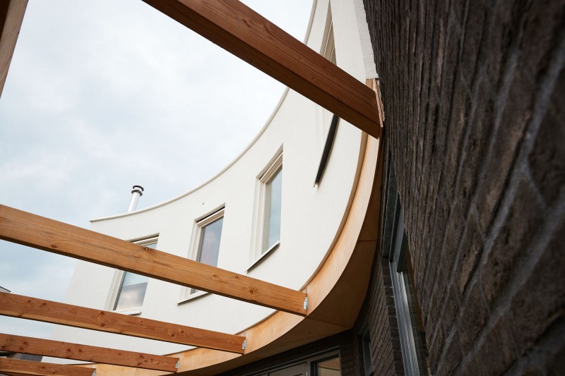 Het is een gebogen ontwerp en dat is eigenlijk al best heel bijzonder, maar in het geval van houtskeletbouw helemaal aangezien een boom recht is.