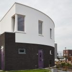 Het is een gebogen ontwerp en dat is eigenlijk al best heel bijzonder, maar in het geval van houtskeletbouw helemaal aangezien een boom recht is. Om dit ontwerp te realiseren hebben we een zeer vernieuwende techniek toegepast. Met de CNC machine hebben we het plaatmateriaal gezaagd en dat hebben we als boven en onder regel gebruikt. Dit is een van de weinige gebogen houtskeletbouw woningen in Nederland, zo niet de enige gebogen woning. Dat maakt het natuurlijk ook wel heel bijzonder!