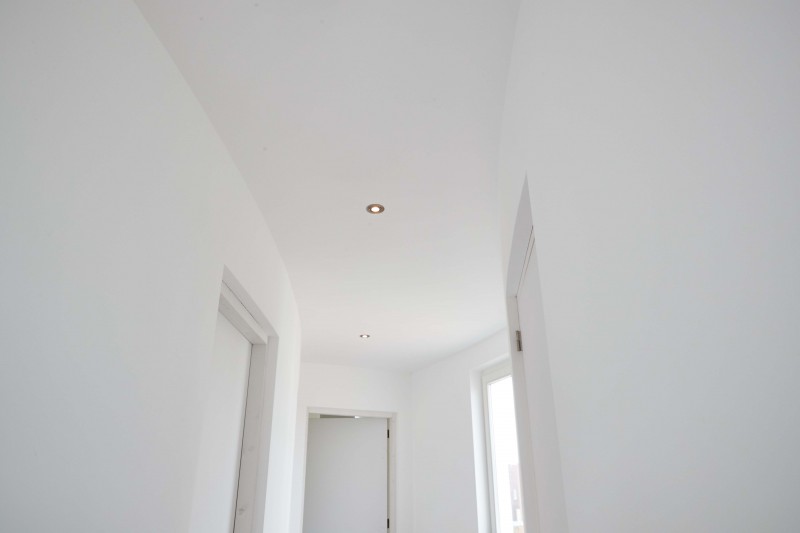 In dit geval hadden onze opdrachtgevers al een compleet uitgewerkt plan, in metselwerk. Hun voorkeur ging vanaf het begin van hun project al uit naar houtskeletbouw, maar ze dachten dat door de gekozen vormgeving het ontwerp niet haalbaar zou zijn in houtskeletbouw. Wij houden wel van een uitdaging dus we hebben het ontwerp eens goed onder de loep genomen en we kwamen er al snel achter dat het wel realiseerbaar was, we hebben niets hoeven te wijzigen aan het ontwerp. Achteraf bleek dat de constructeur niet voldoende op de hoogte was van de mogelijkheden van houtskeletbouw. We zijn toen met onze eigen constructeur om de tafel gegaan en zo hebben we het hele ontwerp in tact kunnen laten en kunnen uitvoeren in houtskeletbouw.
